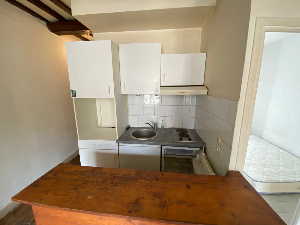 CAEN RUE DE BAYEUX : APPART F2 ancien avec séjour avec cheminée décorative, 1 chambre, coin cuisine US, chauffage individuel électrique - CE : D - libre - Loyer : 500 euros par mois charges comprises dont 20 euros de provisions/charges (régularisation annuelle) + Dépôt de garantie : 480 euros - honoraires location charge locataire : 270.32 euros TTC + état des lieux charge loc : 101.37 euros TTC